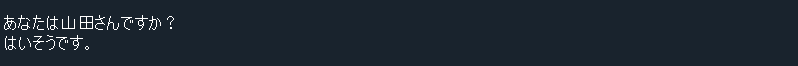 print("あなたは山田さんですか?") print("はいそうです。")