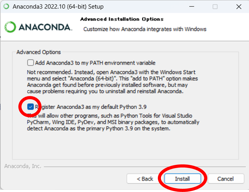「Advanced Installation Options」画面が出てきたら、下のボックスにチェックを入れた状態で「Install」ボタンを押してください。