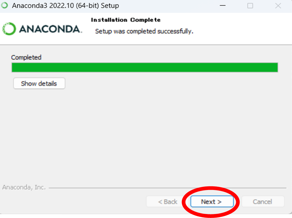 以上でanacondaのインストールは完了です。アプリ一覧の中にanacondaがあれば成功です。