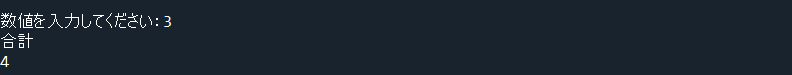 x = input("数値を入力してください:") x = int(x) y = x + 1 print("合計") print(y)