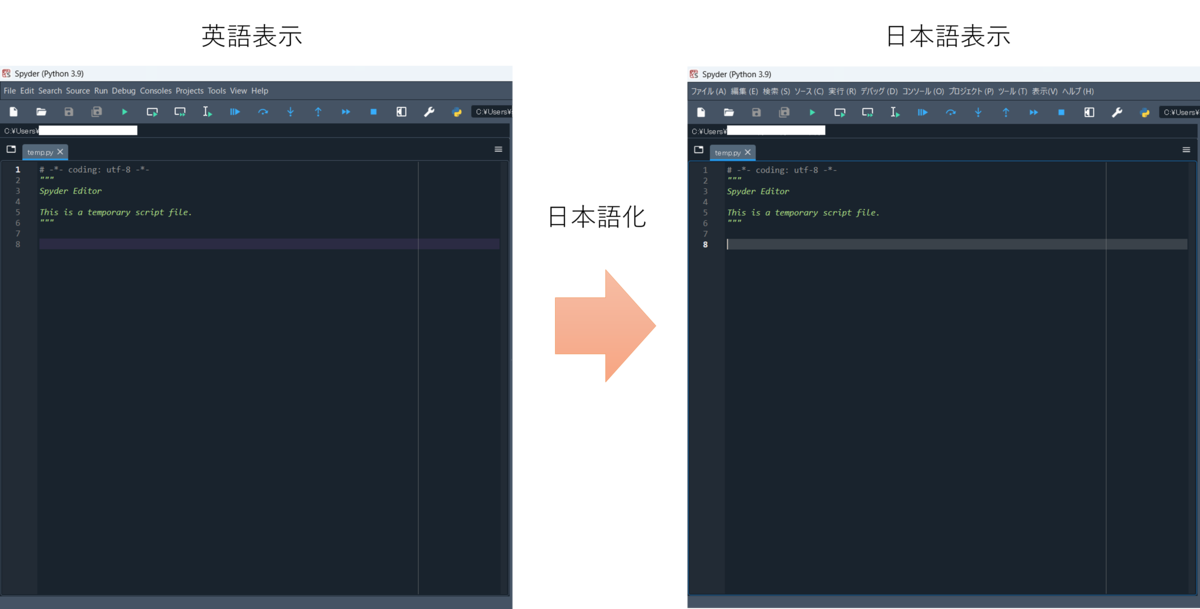 Anacondaをインストールして、Spyderを使い始めるとデフォルトの言語設定が英語になっています。簡単な英単語が使われているので、なんとなく意味は分かるけど。。ちょっと使いにくいな。。と感じたことはありませんか?そこで、本記事ではSpyderの言語設定を日本語に変換できる方法をお伝えして、皆さんのプログラム生活を少しでもプラスにできれば幸いです。