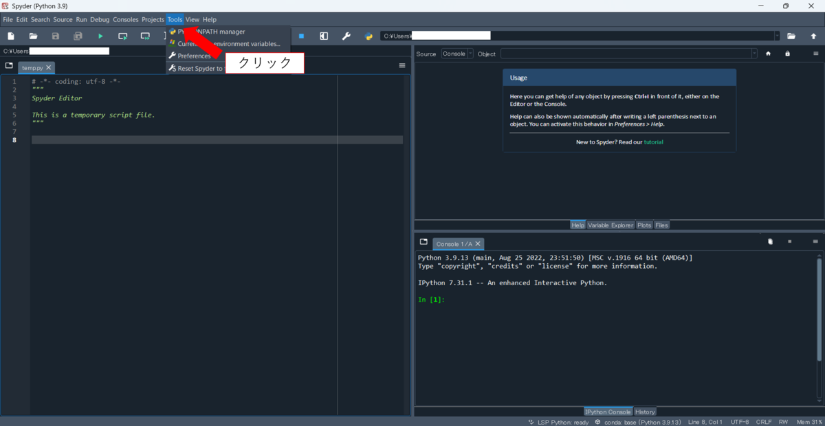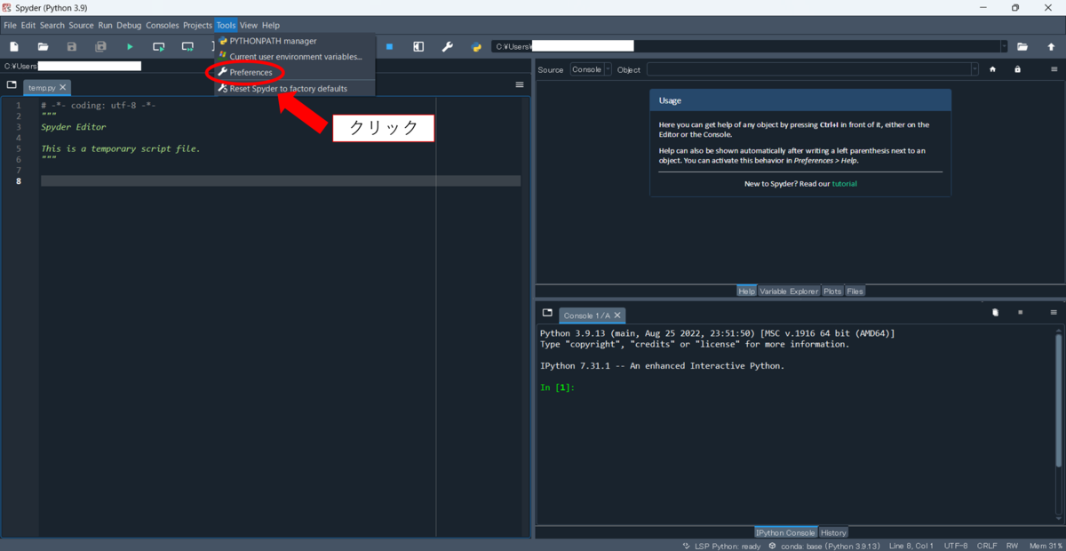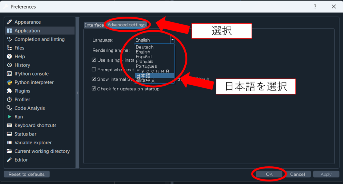 - Spyderの言語設定を日本語に変更する方法